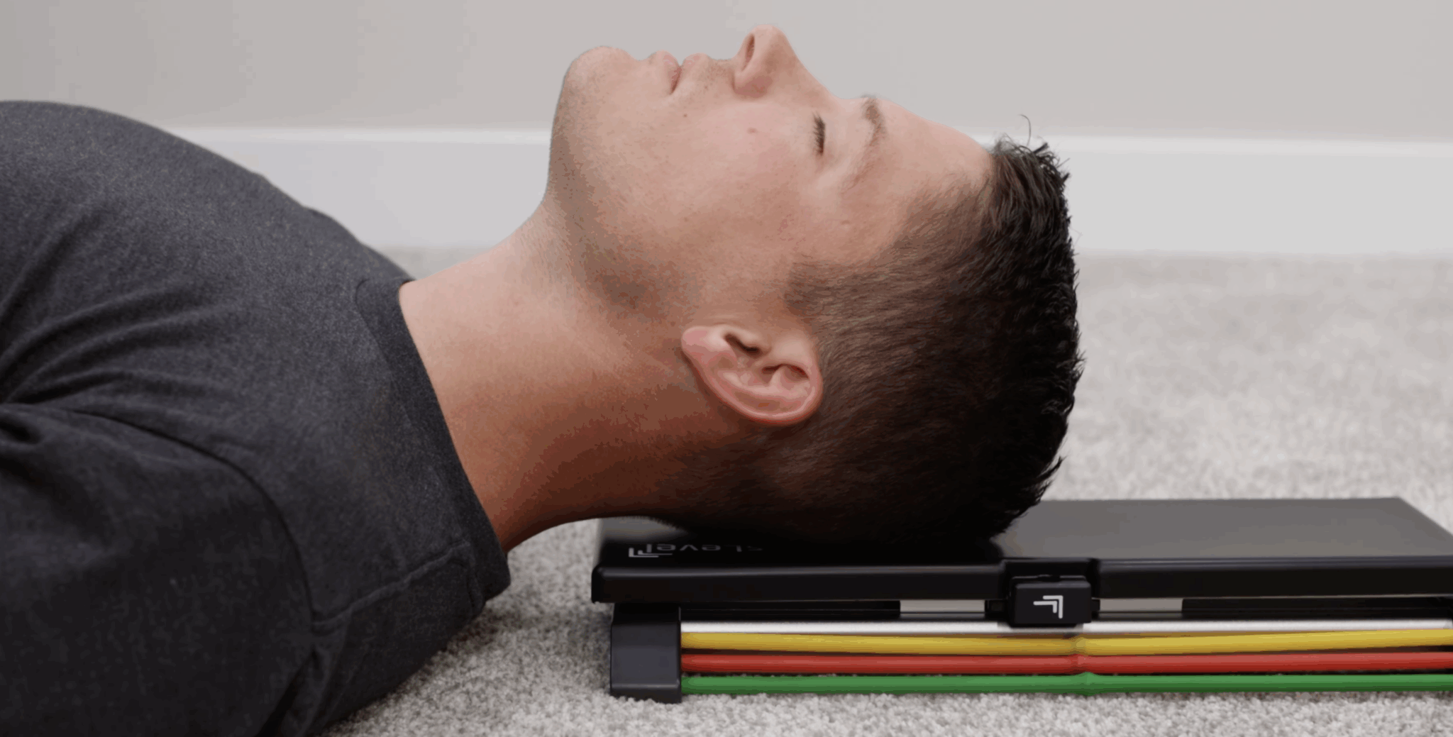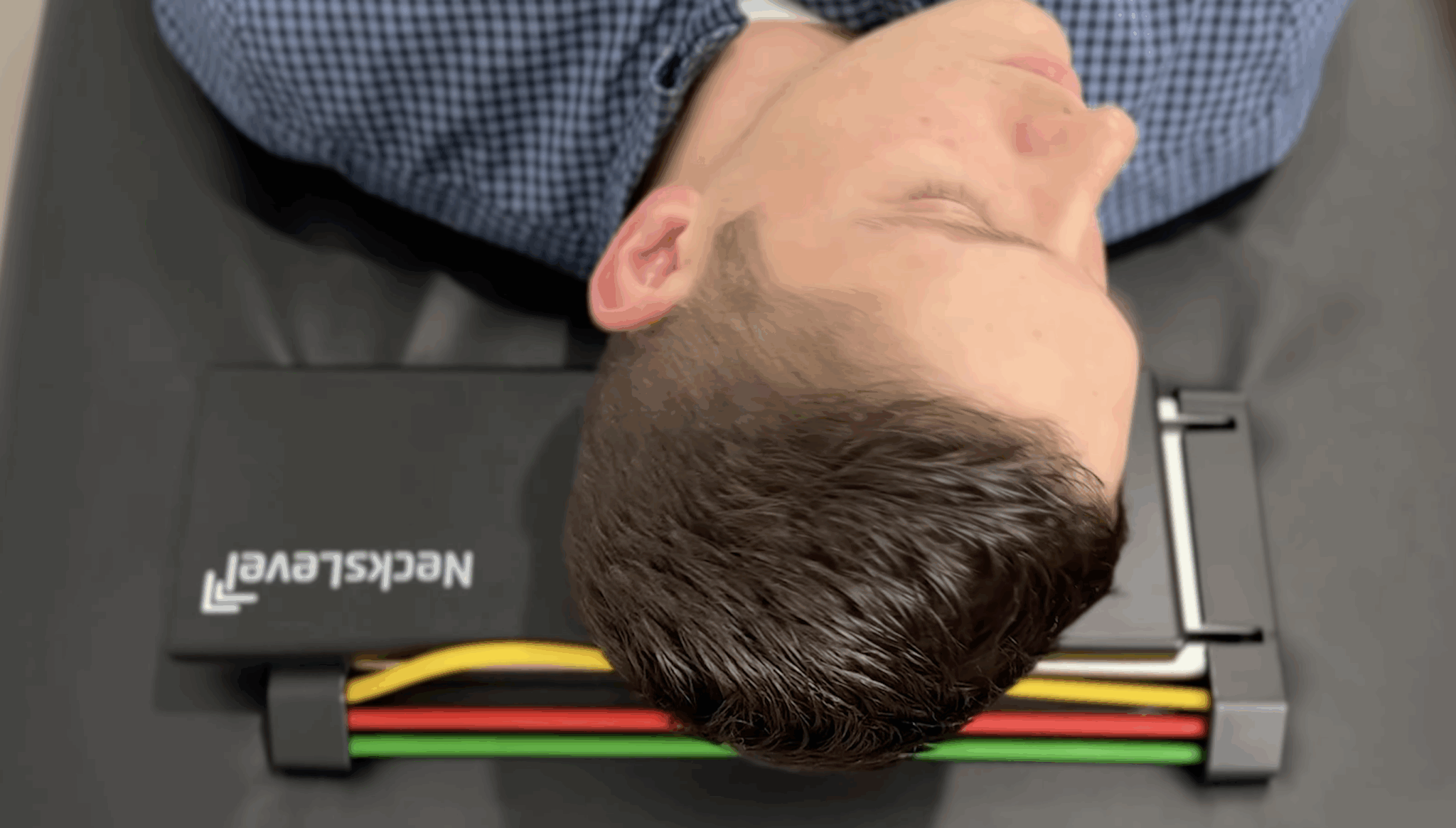 Now, in terms of the NecksLevel Glide, as long as you have a clear space to lie down on the floor, a bed or a treatment table, it’s really easy to use it wherever you need. It’s very simple to set up yourself, just center your head on the device, and you can start stretching or add resistance bands for building strength.
