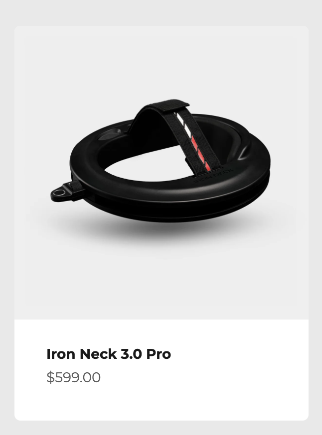 Basically, the NecksLevel and the Iron Neck have the same price points, but the NecksLevel provides rotational resistance for $350, whereas the Iron Neck provides rotational resistance for $600.