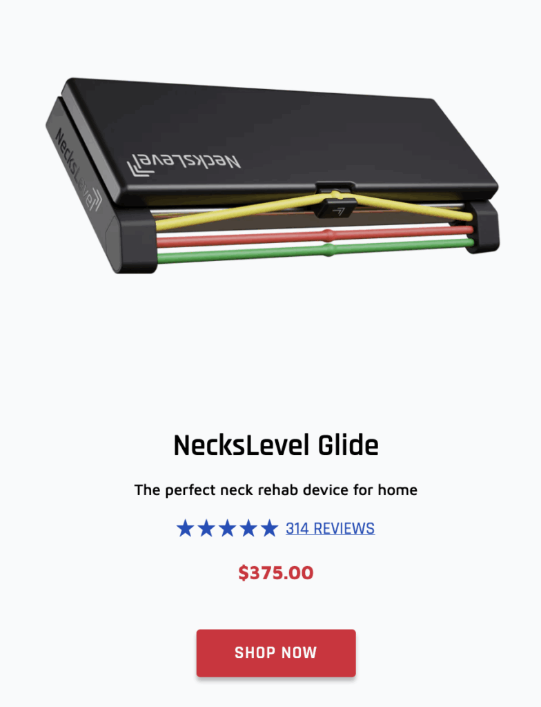 If you’re a high-level athlete who wants to improve neck stability with dynamic standing movements, then check out the Iron Neck. But if you have chronic neck pain and need to get that under control first, I’d suggest you consider the NecksLevel Glide.